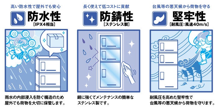 高い耐久性を誇る屋外対応の宅配ボックスです。