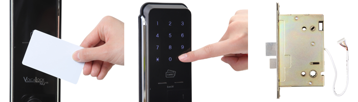 非接触カード(FeliCa・Mifare)や暗証番号など様々な認証・解錠方法に対応する多機能電子錠。